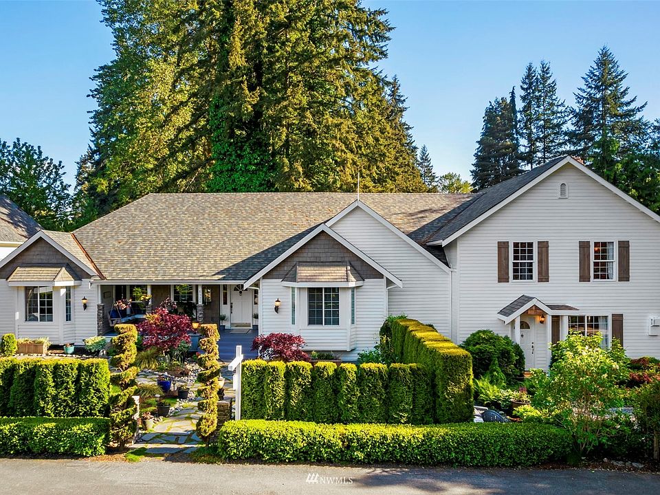 DADU and ADU; Meticulous condition w/ pride of ownership. Perfect for multi-generational or rental income. Tranquil setting in fantastic location. Primary Residence: Main floor primary bdrm/ensuite. Chef's kitchen, stainless appliances, commercial gas range. Sitting/play rm off kitchen. Entertain in stunning dining rm & great rm. Generous den/office. 4 add'l bdrms, bonus rm & a 2nd full kitchen & living space. Breathtaking Property: Garden, fountain, iron wood deck, hot tub, outdoor shower, gas firepit, gazebo, wetlands area w/ creek, RV/Boat and ample parking. No HOA's. DADU/Cottage: Main floor bdrm & bath, kitchen, living & gas fireplace. Upstairs 2nd bdrm & bath. Gas/Elec met.*Garage option*