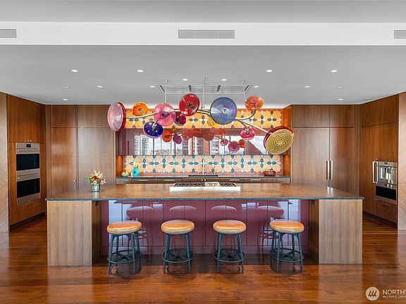 Achievement & position. Spaces, finishes & design exuding permanence, creativity & energy. Curious? Vibrancy emanates from natural materials: gallery walls of book-matched walnut, teak, leather, earthen tile & beautiful stone; embraced by sublime views of water & mountains. Perfect functionality: two private elevator vestibules, bedrooms (all en-suite) separated by copious living spaces. Entertaining is perfect: gallery walls display your latest, a central kitchen & a discreet butler’s pantry support. Two decks for conversations & innovation; flowing inside & out. Retreat to a dreamy primary suite: large, view bedroom with sitting room for reflection, deck access, immense dressing room and a bath that will knock your socks off. 4 parking.