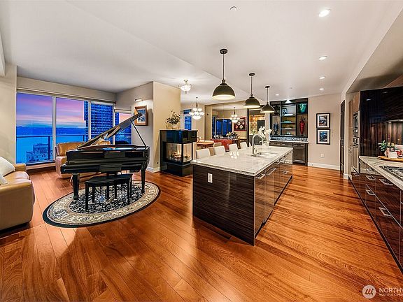 Penthouse style luxury at Escala- 23rd floor Coveted Private Vestibule near 2000 sqft- west facing water,city & mountain views.Only 10 of these floor plans in ESCALA. Unwind to the evening glow of city lights & dreamy sunsets, flanked with walls of floor to ceiling windows. Sun drenched by day -sparkling by night. Designer touches through out the home, beautiful open-concept design lovely flow between living, dining, & kitchen. Oversized slab stone island, gas cooking & cozy gas fireplace. Enjoy 2 oversized primary suites- spa like bath, amazing wardrobe room. Hardwoods throughout home.World class building & Location 24/7 staff on site- be sure to ask about all amenities.2 lap pools,sauna, fitness center.2pk 1stg.Ev capacity.