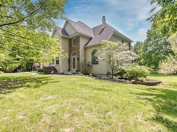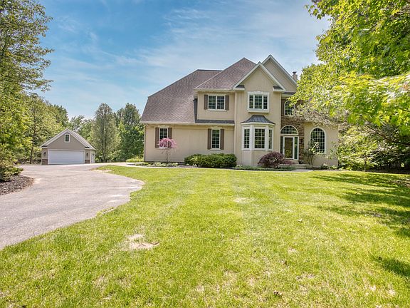 Welcome to this beautiful custom built home on 5 private acres in Byron Center. Soak in the stunning setting as you enter the property on the long paved driveway, past a brand new pole barn, through a circle drive, and to a secondary 2-stall detached garage. The 30'x40' pole barn has 12' tall x 10' wide overhead doors, a pull-thru bay on one side, electrical and a concrete floor. The secondary detached garage has an insulated loft, an electric heater, and an expanded parking area outside. The attached 2 stall garage has entry into the home near the office, laundry room and half bath. This executive 4,500 sq. foot home features new carpet throughout the main and upper floors, fresh paint on the main floor, Brand New furnace and Central Air. Upstairs you will find 4 bedrooms including the primary suite and another full bath. The primary suite features 13' tray ceilings, a sitting room, walk-in closet, jacuzzi tub, and a dual head steam shower. The main floor features a beautiful two-way wood burning stone fireplace between the living room and family room. The large sun room has a glass sliding door that leads to a trex deck. The gourmet kitchen has an island, custom omega cherry cabinets and a hallway full of pantry cabinets leading to a formal dining room. Natural light floods the lower walkout level, fully finished with a wet bar, additional bedroom, bathroom, and rec areas. There is an exceptional amount of storage inside and out. For entertaining, or your own enjoyment, there are built-in speakers throughout the home controlled both on the main floor and lower level. This is a true "must-see" property. It's likely while you visit, you will see the wildlife that frequents the backyard. Take advantage of this rare opportunity to enjoy a quiet and private setting all while being conveniently located in award winning Byron Center Public Schools and only minutes away from countless amenities.