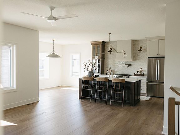 Nestled in Quarry Estates, this charmer by Caliber Homes comes complete with nearly 2,500 finished square feet of high-end design, functional spaces, and luxurious finishes in a beautifully efficient layout. The heart of the home is the stunning kitchen, designed with custom cabinetry, sleek quartz countertops, a walk-in pantry, and an open layout that flows seamlessly into the living and dining areas. From the dining space, step out onto a covered back deck that provides a quiet space to enjoy morning coffee or unwind in the outdoors. The primary suite is both luxurious and calming, featuring an en-suite bathroom with a custom tile shower, dual vanities, and access to a spacious walk-in closet. With 4 bedrooms, 3 full baths, and an additional flex room perfect for a home office, gym, or guest suite, this home is designed to accommodate a range of lifestyles. The finished lower level extends the living space and is tailored for entertaining, complete with a wet bar and generous room for gatherings or game nights. Located just steps from Ada Hayden Park with its miles of scenic trails and lake views, and situated within the Gilbert School District, this home offers the lifestyle, quality, and setting you've been looking for.