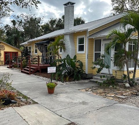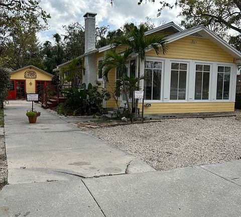 Fully furnished home in the heart of the downtown Towle's Court community being offered for 30 days or more. Rent increases during season, January to May, for $5,000/mth. The home was originally built in the 1920s but has had many upgrades, including new windows and flooring. The property is just a short walk to downtown Sarasota with many restaurants, taverns and shopping. The house has very recently been remodeled with a new kitchen, including a farm house sink, new tile and vanity in full bathroom and all new stainless steel appliances. There is a separate building on the property that houses a hair salon. The property offered for rent has a large main room with a fire place, a front room with full windows looking out onto Adams Lane, 3 bedrooms, full bath in the hallway, half bath in the back bedroom that has 2 twin beds, a kitchen and a laundry area with a stacked washer/dryer. Each room has its own door leading to the outside of the building. There is a paved space area in the back with a deck off the back room that is shared with the hair salon. There are small decks on the side of the building as well. Directly next door is Indigenous restaurant and a vacant lot on the other side of the property. There are wood floors in the living room and bedrooms, new tile in the bathroom, new vinyl tile in the kitchen and laundry area. Three parking spots available in the front of the building. Rent includes utilities, electric up to $300/mth (tenants will be responsible for electric above $300/mth) and wifi. Please contact Michael at the listed number if interested in viewing the property.