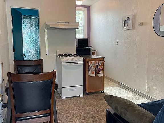 Lovely, economic and private Studio Apartment on ground floor of small multi-family property! This cozy unit has newer carpet, updated paint, newer kitchen appliances such as gas range, fridge, and microwave. Large fenced shared back yard with shared storage shed, onsite laundry, and off-street parking. Walk 1 block to shopping, bus line, park, bike paths, and schools. Easy access to downtown, hospitals, and UO! Great location in a sustainable, friendly, small living community.