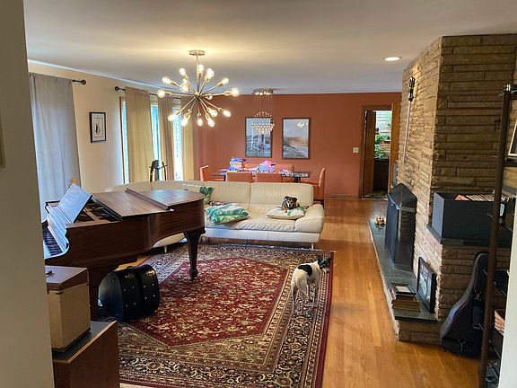 Two car garageOne level spacious layoutBaby grand pianoGorgeous light fixtures