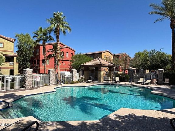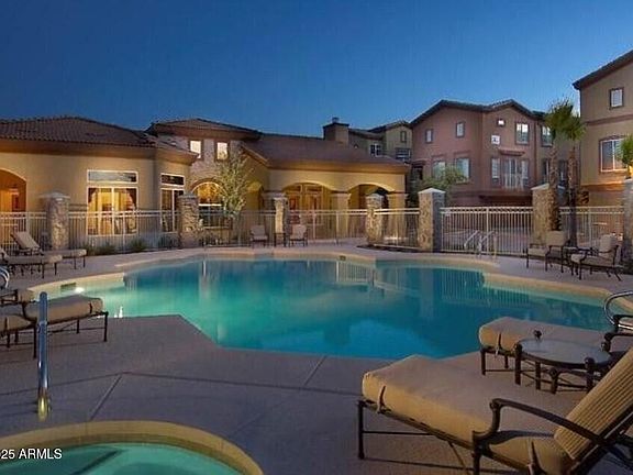 END-UNIT townhome in a GATED, resort-style community with NEW AC & water heater! Enjoy TILE flooring throughout with carpeted bedrooms and a soothing neutral palette. The spacious primary suite features vaulted ceilings, a sitting area, dual vanities, shower/tub combo, and walk-in closet. Bonus flex space makes a perfect office! The private balcony is ideal for morning coffee or evening relaxation. The kitchen shines with stainless steel appliances, granite counters, a pantry, and island with breakfast bar. Community perks include a clubhouse, fitness center, theater, BBQ area, heated pool/spa, playground & more. Prime North Phoenix location near 3 major freeways and top shopping!