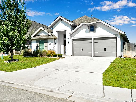 Welcome to 1920 Edgecreek, a meticulously maintained single-story residence where modern comfort meets community charm. Nestled in the heart of the desirable Village of Mill Creek subdivision in Seguin, this home presents a perfect opportunity for relaxed and convenient living. From its attractive curb appeal to its thoughtfully designed interior, every detail has been curated for an exceptional living experience. Step inside and be immediately impressed by a truly expansive open-concept floorplan, bathed in an abundance of natural light. This modern design beautifully integrates the main living areas into one grand, cohesive space perfect for today's lifestyle. The heart of the home is the inviting living room, which flows seamlessly into a spacious and flexible area ideal for your dining table. This entire space opens directly to the gourmet kitchen, creating an entertainer's dream where conversation and guests can move about effortlessly. The chef in your family will fall in love with the modern kitchen, which is as functional as it is beautiful. It features gleaming granite countertops, a full suite of stainless steel appliances, ample cabinet storage, and a large central island with a breakfast bar that's perfect for casual meals or serving appetizers. A generous walk-in pantry ensures you'll have plenty of space for all your culinary needs. Escape to your private owner's retreat, thoughtfully separated from the secondary bedrooms for maximum tranquility. This serene sanctuary boasts a spacious bedroom and an incredible en-suite bathroom designed for ultimate luxury. You'll find not one, but two separate walk-in closets, providing abundant storage. The bathroom itself creates a true spa-like experience, featuring two separate, individual vanities, a large soaking tub perfect for unwinding, a separate walk-in shower, and a private water closet for ultimate convenience and privacy. It's the perfect space to begin and end your day in comfort. This intelligent floor plan also includes three additional generous bedrooms served by two additional full bathrooms, providing incredible convenience for family and guests. The versatile front bedroom is a true standout, distinguished by elegant glass French doors. Its location near the entry makes it a perfect, light-filled space for a home office, study, or den. Your living space extends outdoors to a wonderful covered patio, where you can enjoy your morning coffee or a cool evening breeze. The private, well-maintained backyard offers a blank canvas for gardening, recreation, or simply enjoying the Texas sunshine. Life in the quiet Village of Mill Creek provides fantastic community amenities, including a neighborhood pool and park for weekend fun. Beyond your doorstep, you are mere minutes from the picturesque historic downtown Seguin. Imagine spending your weekends exploring the weekly artisan markets in the charming town square or treating yourself to an unforgettable meal at Burnt Bean Co., famously rated the #1 best BBQ restaurant in all of Texas. This prime location still offers easy access to I-10 for commuters, as well as convenient routes to New Braunfels, San Marcos, and the recreational opportunities of the Guadalupe River. This beautiful home offers a perfect blend of thoughtful design, modern amenities, and an unbeatable community lifestyle. Don't miss the opportunity to make 1920 Edgecreek your new address. Schedule your private showing today! Discounted rate options and no lender fee future refinancing may be available for qualified buyers of this home.