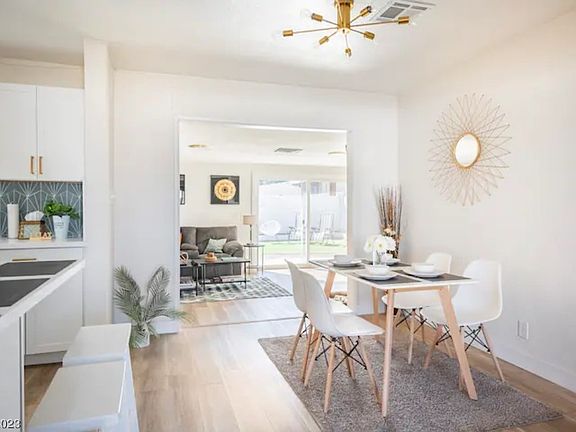 Lovely upgraded single story home with relaxing back yard is move in ready. The kitchen features Calcutta counter tops, stainless steel appliances along with a custom backsplash and a view of the beautifully landscaped backyard. The home features amazing design details with gold accents. This is a must see. 10 minutes from Las Vegas Strip.