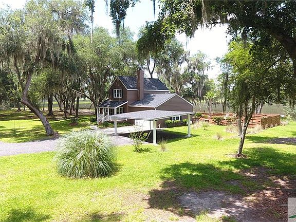 How will you enjoy sunsets over the water? Sipping on your favorite beverage and relaxing after a long day? A romantic dinner with someone special? Imagine all you can do on this 2.48 acre lot with over 300 feet of marsh front shoreline and a canopy of mature oaks draped in Spanish moss. Now come see it for yourself! Rock on the front porch swing. Go crabbing in the backyard! Have a picnic under the covered pavilion. Love to entertain? 2 words&POOL PARTY! Visit with friends by the living room fireplace under the cathedral ceiling or on the screened in back porch. Kitchen has plenty of counter space and storage for the chef in the family. Upstairs finds the master suite with sitting area overlooking the marsh. 2 car garage with workshop so bring your projects. Covered parking for 2 more cars. NO HOA so bring your boats and RV. Across the street from Jones Creek Park and Boat Ramp and convenient to Ft Stewart & I-95. Schedule your showing of this unique property today!