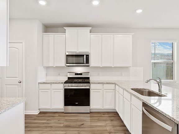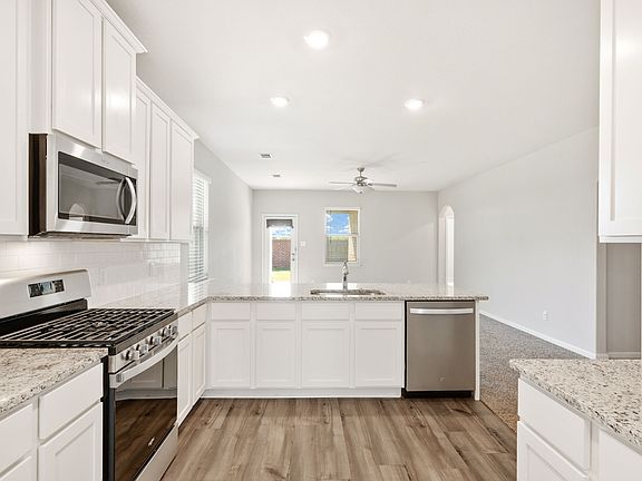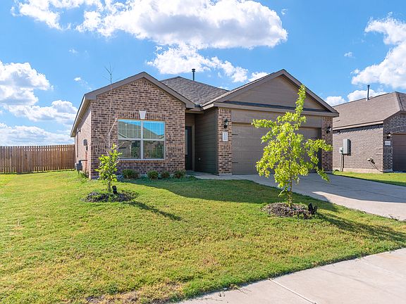 This single-story, three-bedroom, two-bath home is bursting with character and offers numerous desirable features. The kitchen, with its large granite island, opens to the living and dining areas and includes stainless steel appliances and a refrigerator. Both bathrooms are fully upgraded with granite counters. There are several storage rooms available for your convenience. Enjoy the Texas afternoon in the large covered patio with no rear neighbors, offering privacy and a peaceful setting. The home is within walking distance to Anna Middle School and High School, a playground, a community pool, and Slayter Creek Park. The dining room, located at the front of the home, is the perfect space for family meals. The open-concept kitchen and family room create an ideal area for entertaining. The master suite is a perfect retreat, featuring an en-suite bathroom with a large enclosed shower and a walk-in closet. Another highly coveted feature of this home is the covered patio.