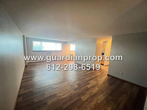 Huge main floor corner unit available October 1st in Merriam Park. Large open floor plan between the living room, dining area and kitchen with updated flooring. Both bedrooms are large with carpet and ample closet space. There's a full bathroom in the hallway off the bedrooms. Kitchen has all stainless appliances and includes a dishwasher. There's a wall a/c unit in one of the bedrooms and the living room. There's a walk-in closet off the living room for storage.