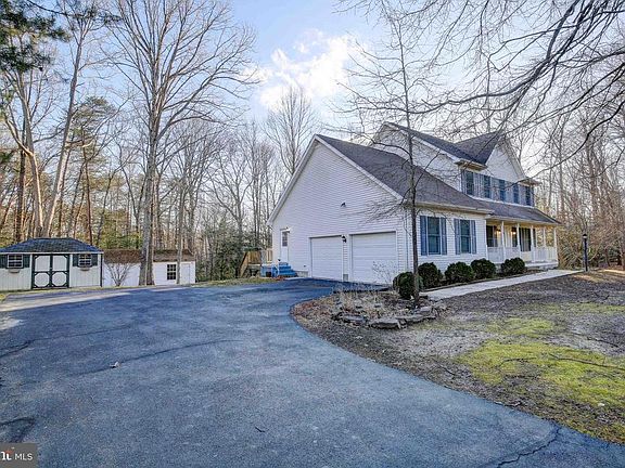 Beautiful well maintained home sits on 3 acre lot! Enjoy morning coffee and views of private wooded backyard from huge deck! TONS OF SPACE HERE! 3 bedrooms & 2 Full Baths upstairs, & 1/2 bath on main level. Hardwood floors throughout, crown molding, chair rail, Brand new HVAC & new kitchen tile floors. New stainless steel stove & range hood being installed soon! Office with custom floor to ceiling shelves. HUGE walk-in closet in Master Bedroom. Fully finished basement with wet bar, 1 bedroom, full bath & easy walkout - great for an in-law suite. Additional outbuilding and shed with electric! Terrific for shop. Lots of driveway parking & 2 car attached garage! . Close to shopping, convenient to PAX River, Calvert Cliffs- Excelon, Dominion, Flag Ponds Park and schools! Plenty of room to grow here and make this home your own! Won't last long!!