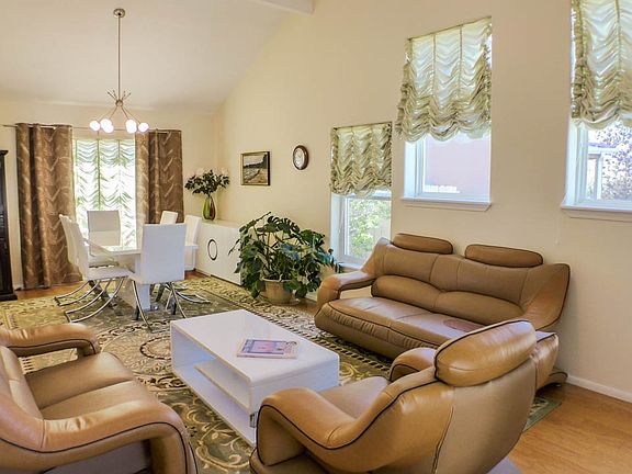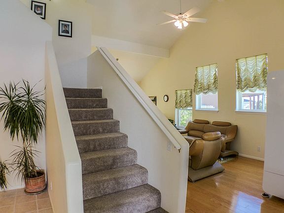 Modern construction, soaring vaulted ceilings throughout, great natural light and and panoramic mountain views set the tone for this well-maintained residence. Stepping inside from the covered front patio, note the high ceilings, beautiful wood floors and large windows that frame the main living room. The efficiently designed kitchen features ample cabinet/drawer space, modern appliances including a built-in gas cooktop, oven and microwave. The kitchen is near a second living room that integrates with another dining space. These areas have spacious windows overlooking the large backyard and the beautiful mountain views beyond. The main level also provides a full guest bath and bedroom/home office with a built-in desk. Note the laundry room with extra storage that leads to the finished two car garage. The upper level rooms also feature high ceilings. This level is highlighted by a huge master suite and bath with many hard to find features. These include a large walk-in closet, double vanities and a private toilet space. From here, take a minute to enjoy views from the private master deck. Three additional guest bedrooms, all with large windows, are located upstairs as is a third full bath with ample cabinet storage. Moving back downstairs, head out the backyard with a covered patio, privacy fencing, ample lawn space, garden beds and more. Close to the middle school, stables, community gardens and walking trails. This home, with its modern design, is a must see! Don't miss it!