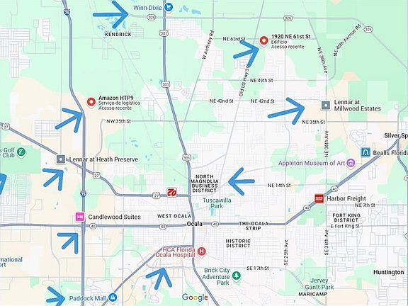 Great Opportunity in Ocala, FL! Excellent lot in a rapidly growing area with prime access to key commercial and leisure spots. Conveniently located near major distribution centers such as Amazon HTP9, FedEx Ground Ocala, and Chewy, ensuring high demand and strong logistical potential. Just minutes from Historic Downtown Ocala, offering a variety of shops, restaurants, and services, as well as easy access to I-75, providing quick connectivity throughout Florida. The area also benefits from its proximity to the World Equestrian Center, boosting tourism and local property value. Additionally, the lot is close to amenities like HCA Florida Ocala Hospital, Public Storage, Dollar Tree, Harbor Freight, and more. Lot is sold as-is. The lot has water and electricity, but It is the buyer's responsibility to verify all utilities and conduct due diligence. Don't miss this investment opportunity! Contact us for more details.