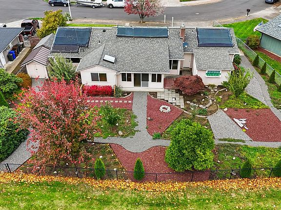 Call for details on 3.375% Rate Assumable Loan! Charming home perfectly situated on the 5th hole of the Gresham Golf Course on a cul-de-sac, with lovely views of Mt. Hood! This 3-bedroom, 3-bath home offers a versatile 3rd Bed/den/flex space off the primary suite with vaulted ceiling and a skylight that leads to a sunroom with plenty of natural light, perfect for enjoying your morning coffee. Two bedrooms feature full bathrooms for added comfort and privacy, including a updated walk-in shower in the second primary bedroom. The kitchen features updated counters with an undermount sink and stainless steel appliances, creating a wonderful space for cooking and entertaining. Off the kitchen, a small storage room with built-in shelving keeps everything organized. The living room includes convenient in-floor outlets, and the sunroom is located just off the living area, ideal for relaxing or entertaining. Enjoy the beautifully landscaped backyard that showcases thoughtful walking paths that leads to four fruit trees, including Macintosh apple, red plum, purple plum, and two varieties of pears as well as two weeping cedars, lavender, Russian sage, and other charming ground covers. Additionally there is a 24X8 garden shed and 12x8 workshop that includes power and access from the attached 2-car garage. The front yard features a variety of perennial flowers, including lilacs, coral bells, and lilies, creating stunning spring curb appeal. Further highlights include 24 owned solar panels that contribute to a VERY LOW monthly electric bill. All appliances including the furnace and hot water heater have been updated beginning in 2018. Don’t miss the opportunity to own this beautiful, move-in ready property with both style and functionality in a premier golf course location. 3rd bedroom may be non-conforming.