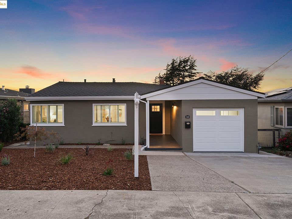 1920 Ralston Avenue checks all the boxes—modern mid-century lines, wide-open living, views, 4 bedrooms, 2 bathrooms, a huge fenced yard, and flexible bonus spaces—what more could you want? Set on a lot of over 6,000 SF, this home blends style, comfort, and opportunity. The main level offers easy one-step, one-level living with three bedrooms & an updated bathroom. An expansive living room with loads of natural light and flows seamlessly to a large deck surrounded by views. The dining area and remodeled kitchen connect effortlessly to the living room, while fresh interior and exterior paint make the home move-in ready. An attached garage with interior access adds convenience. The lower level, with its own private entrance, features an additional bedroom and bathroom plus a bonus area with outdoor access—ideal as a guest suite, gym, creative studio, or potential ADU. Extra storage and flex spaces add even more possibilities. Outdoors, the oversized fenced lot is a true blank canvas for gardening, play, entertaining, or future expansion. The deck is perfect for sunset views and effortless entertaining, with direct yard access creating a true indoor-outdoor lifestyle.Conveniently located near BART, AC Transit, freeways, shops, schools, parks, and neighborhood favorites!