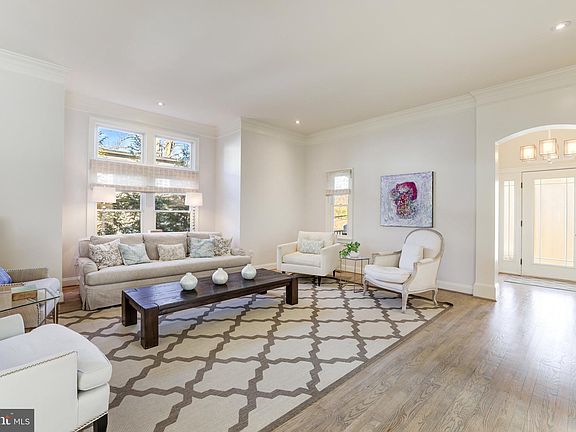This immaculate Franklin Park home on a +/-quarter-acre lot with oversized 2 car garage has a stunning transitional aesthetic, boasting a light filled open floor plan including all the requisite formal and informal living spaces, with lovely window views throughout, and blossoms abounding in the spring. A welcoming wraparound front porch, tiered landscaping with lighting and irrigation, wraparound rear porch and two rear flagstone patios make for an elegant and private setting. Vaulted ceilings on the majority of the main level as well as gracious ceiling heights bring in plenty of natural light to the family room, dining room, library, and breakfast room. Updated lighting and lovely window treatments, custom paneling and floor-to-ceiling fireplace complement the Neff custom cabinetry and hardwood floors. The gourmet kitchen with under-cabinet touch lighting, pot-filler, soft-close cabinets and drawers, customized storage inserts, appliance garage, Bosch, Sub Zero and Wolf appliances and walk-in pantry opens to both the spacious family room and breakfast room with skylights, providing access to one of two patios. The main level is completed by a private library, formal living room, powder room with custom wall treatments and a full main-level bedroom suite. The upper level includes 4 large bedrooms, 3 full baths, plenty of storage and a laundry area. The expansive primary suite features 2 walk-in closets, sitting room with fireplace, dual vanities, water closet, spacious shower and separate soaking tub and heated floors. The fully finished walk-out basement was completed recently and includes a large rec room with built-ins and gorgeous custom temperature controlled 1500 bottle wine cellar with motorized wine wall that moves to reveal bonus storage. Mudroom and bar with second fridge and second dishwasher, powder room, and garage access round off the lower level. The lower level rec room is also wired for speakers. The roof was replaced in 2019. Franklin Park is known for its lush natural landscape, mature trees, and charming rolling hills. This home offers access to the best of McLean with its close proximity to all the Downtown McLean and Downtown Arlington have to offer. It is ideally situated just minutes to the George Washington Parkway, I-66, Tyson's Corner, and the Capital Beltway.