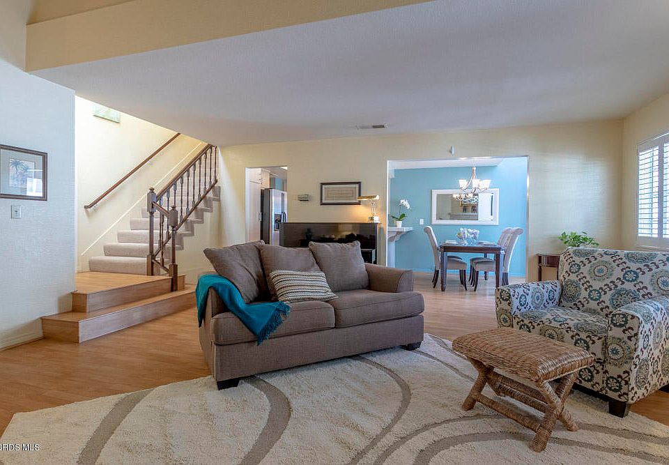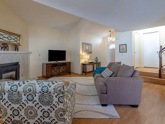 Airy, bright and smartly designed, this floor plan boasts fantastic use of nearly 1,600 SF including a spacious kitchen, complete with loads of cabinets, a pantry and ample counter space, a generously-sized living room accentuated by vaulted ceilings & a cozy gas fireplace and a dining area with a sliding glass door that draws you to a lovely child, pet & entertainment friendly patio. Upstairs, escape to one of three bedrooms comprised of a master bedroom ensuite with double sinks & a balcony with a serene greenbelt view. A secondary bedroom with wall-to-wall closet space features custom built-ins and a balcony and adjacent to a Jack 'n' Jill bathroom with double sinks, which connects to the 3rd bedroom, also with custom built-ins in the closet! Located in the highly sought-after Indian Oaks community in Simi Valley, you'll appreciate the professionally-maintained green belts, a security guard that walks the property for 12 hours each night, being steps away from the community pool & spa and the convenient proximity to grocery stores, retail shopping, parks, restaurants & transportation. Sweet and stylish, this gem of a home has the best layout of all the units, is move-in ready and will be gone before you know it!