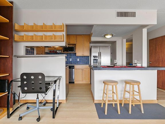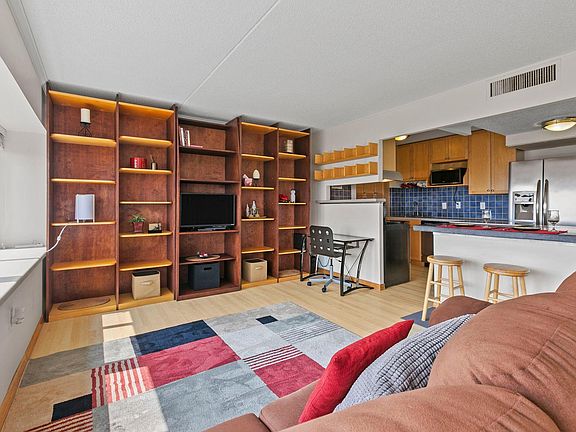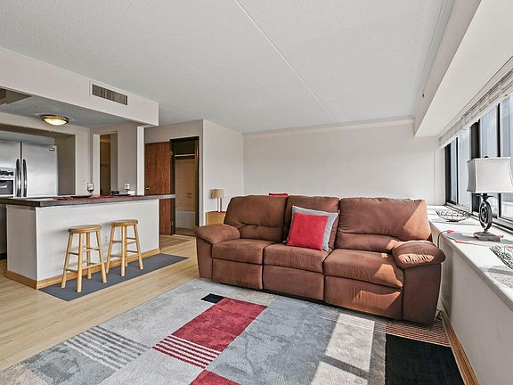 Welcome to Riverview Towers! This exquisite studio is positioned on the 11th floor, offering an east-facing perspective that boasts a breathtaking view of the river. Its sought-after features include a perfect breakfast bar and an open concept kitchen. The studio's prime location, within walking distance to Gopher & Vikings games, UofM campus, jogging trails along the Mississippi, restaurants, and bars, makes it a true gem. Easy access to the highway and downtown adds to its appeal. Enjoy the array of amazing amenities, including an indoor pool, hot tub, sauna, workout room, outdoor tennis courts, car wash, secure bike storage and much more! **Unit comes with shelving units, twin beds, night stands, TV, closet benches, assorted dishes and silverware. Ready to move in! Don't miss the chance to call this place home!