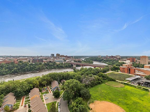 Tastefully remodeled unit with stunning views of the Mississippi from the 19th floor! This condo features granite countertops, stainless steel appliances, an open kitchen to enjoy the view, and hardwood floors in the entry! Enjoy this perfect location close to the river, walking paths, biking trails, restaurants, the light rail, and the U of M campus. The association fee includes all utilities (even cable TV & internet)! Parking options: $40/mo for outdoor parking; $55/mo for unheated garage parking ( B and Lobby levels) $80/mo for heated garage parking (A level). The recent special assessment was paid in full.