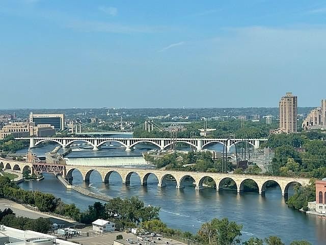 Top-Floor Penthouse with Iconic Views – First Time Available in 35 Years! This is a rare chance to own one of the largest units in the building—one of only four of its kind, and this one has the best view. Perched on the top floor, you’ll enjoy unobstructed views of the downtown Minneapolis skyline, the Mississippi River, and the iconic Stone Arch Bridge. Incredible sunsets behind the city of lights. With two expansive living areas, there's plenty of room to create both a formal space and a more casual lounge or media room. Smart privacy layout with a bedroom and bath on each end of the unit. You’ll also enjoy the convenience of IN-UNIT LAUNDRY, a rare find in this building. Pets OK at less than 70lbs. Heated garage ($90/mo), underground parking ($65/mo), outdoor parking ($35/mo), and free guest parking. Walkable to the U of M and scenic river trails. ALL SPECIAL ASSESSMENTS WILL BE PAID BY THE SELLER. Don’t miss this chance to elevate your lifestyle in a truly special home where modern living meets everyday ease in perfect harmony, ensuring a lifestyle that exceeds all expectations!