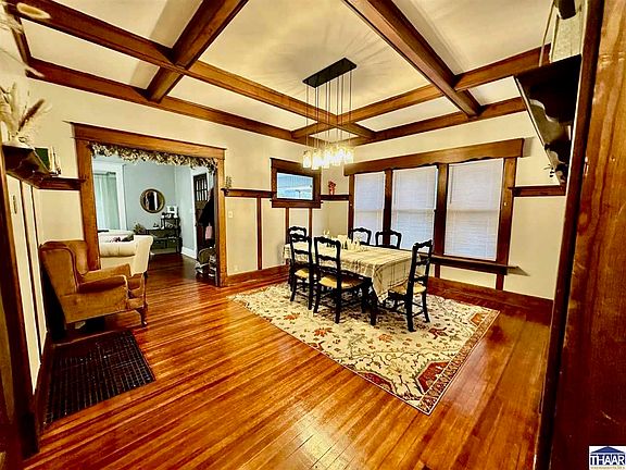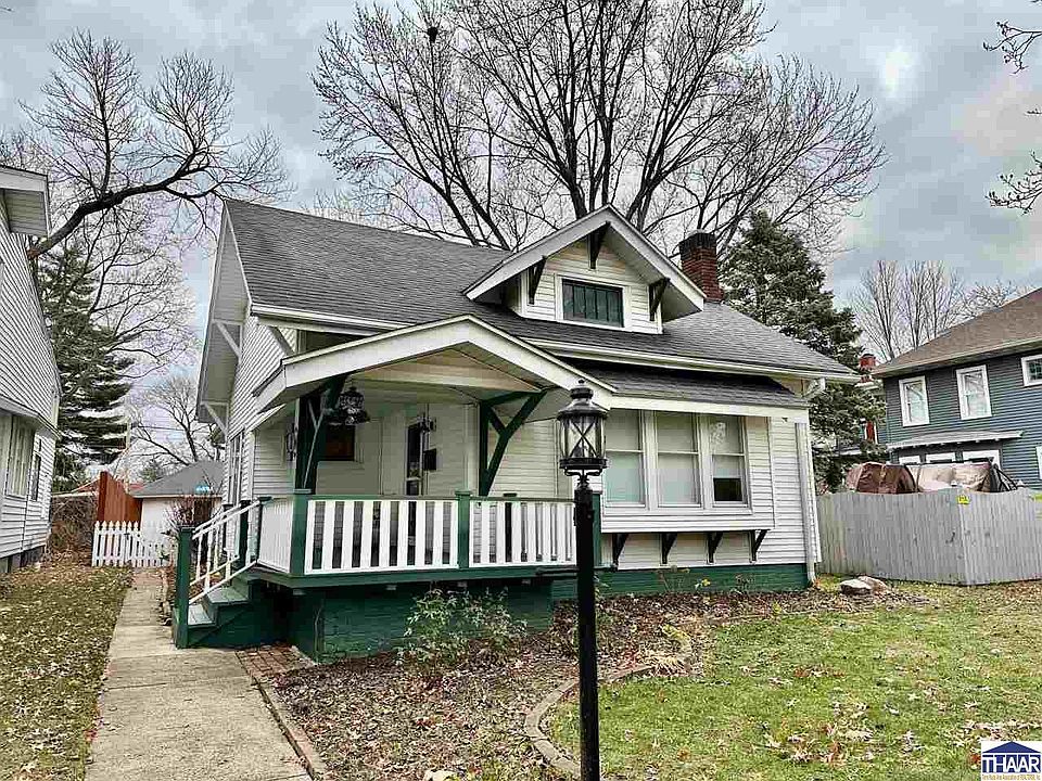 Charming Home with Modern Upgrades & Timeless Character!! This beautifully updated home blends classic charm with modern convenience. Step inside to discover a gorgeous newer kitchen and updated bathrooms, along with stunning hardwood floors. The dining room is a standout with its exposed wood beams, classic swinging door, and rich character that adds a touch of elegance. The basement is a blank canvas, ready for your creative touch—whether you envision a home gym, entertainment space, or additional storage. Outside, the fenced yard offers privacy and space to relax, while the 1.5-car garage provides convenient parking and storage. The vinyl siding ensures low maintenance, and the inviting front porch with decorative cross beams gives this home great curb appeal. Don’t miss your chance to own this charming home—contact your local Realtor today to schedule a showing!
