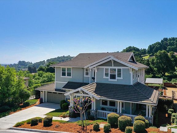 Enjoy privacy, picturesque views, and acreage of rolling hills with majestic oak trees, all from your lovely wrap-around front porch or dreamy backyard oasis. The enormous kitchen is outfitted with Wolf range, sub-zero refrigerator, expansive quartz counter space and breakfast bar. The master suite is elegant and expansive, with a master walk-in closet organization system from California Closets. The first-floor bedroom and full bathroom are perfect for multigenerational living or private office. Beautiful custom sliding barn door at the formal dining room entry. Reclaimed wood accent wall in the formal living space. Floor-to-ceiling enclosed garage cabinet system and custom wall hangers. Entire backyard landscaped, inclusive of a pergola, decomposed granite walkways, bocce ball court, irrigated misting system, and lush vegetation on a smart water system. Easy access to freeways, Gilroy Gardens, wineries, schools, and the great outdoors, this home will satisfy everyone!