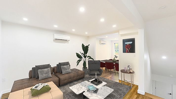 townhouse duplex with private back yard washer dryer in apt. 1800sq townhouse duplex apt, big five bedrooms . five legal bedrooms ..two full bathrooms. american made kitchen with farm sink and steel appliances inc dishwahser and microwave washer dryer in apt. ac and heat.ample closet and storage space.video intercom.direct access to private back yard attached bike storage great area near a green park walk to L train Dekalb stop see real photos and floor plans