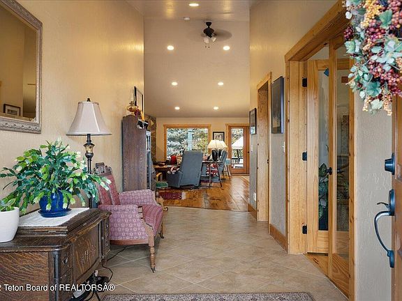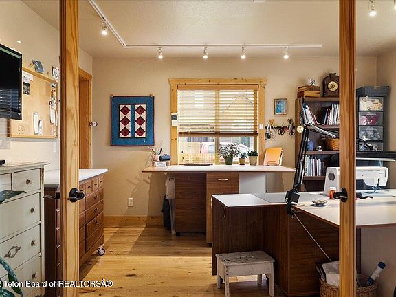 Immaculately maintained 5000+ square foot home in Targhee Ridge subdivision, located just off of Ski Hill Road. This stunning high-end home features plenty of space with 5 bedrooms, 3.5 baths, several large gathering spaces, and a fully finished basement. The open-plan kitchen's stainless appliances, excellent layout, separate pantry, and granite countertops allows for easy meal prep. Enjoy simultaneous interaction with guests and family in the neighboring open living area with soaring ceilings and a cozy fireplace. Savor the great outdoors from the private raised deck while you relax and listen to the mountain breeze rustle through trees. Or enjoy the dedicated garden space and storage shed that is perfect for any horticulturist. Exterior was repainted in 2022. The main floor includes separate laundry room, dedicated office space and three bedrooms. Beautifully light and bright with stunning windows, the master suite offers deck access, high ceilings, walk-in closet and large ensuite with deep soaking tub. The main gathering space in the finished basement is massive and offers plenty space for a variety of activities. The wet bar and dedicated wine room ensure you are always ready to entertain. A large workshop/crafting room is the perfect space for the enthusiastic hobbyist while two additional bedrooms and full bathroom offer additional accommodations. Occupy this home full time or use as short-term rental with excellent proximity to Grand Targhee and just a few miles to Downtown Driggs.