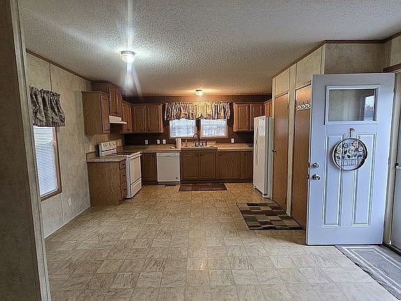 INCLUDES-3 BR, 2 full baths-garden tub and shower in master, open concept KIT/LR, washer/dryer, refrigerator, microwave, dishwasher, & electric stove stay, 8x10 shed, & 2 car, off street, asphalt driveway.