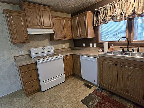 NEW since 2021-all carpet, all kitchen/bathroom fixtures, all window treatments, refrigerator, dishwasher, low maintenance professional landscaping, 40' ramp, & front/screen door.