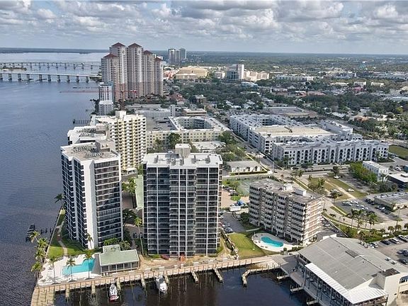 Welcome to Pointe Royale! This condo boasts additional square footage that enhances both comfort and versatility, offering expanded living and entertaining space rarely found. Step inside to discover elegant travertine flooring flowing seamlessly throughout the home, setting a tone of timeless sophistication. The expansive kitchen is a true standout, offering abundant cabinet and pantry storage—perfect for both everyday living and entertaining. Custom built-in closets and thoughtfully designed storage solutions maximize functionality without sacrificing style. And with balconies at nearly every turn, natural light and fresh air are always within reach, creating a breezy, open feel that complements the waterfront lifestyle. Wait until you see this view- The panoramic views of the Caloosahatchee River and Pincher's Marina create a serene, ever-changing backdrop that will make your jaw drop. Whether you're sipping morning coffee or hosting sunset gatherings, the waterfront scenery is simply breathtaking. Speaking of breathtaking, wait until you see the sunsets..