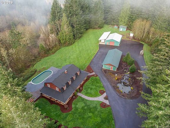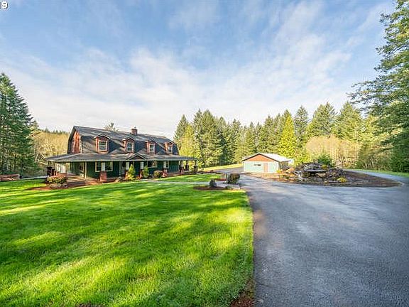 Iconic Property in Redland! Gated and completely private with quiet corporate tree farms on borders. 3 Motocross training tracks for riding! Main bath just remodeled. 3 car detached garage, 36x48 shop, detached studio, circle driveway with impressive waterfall. Large deck w/above ground pool, hot tub, fenced, plenty of timber value on 2 tax lots. Incredible training home for serious riders or extremely private and cozy gated retreat!