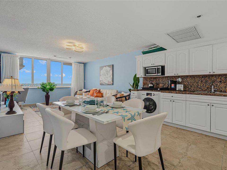 Wake up to oceanfront sunrises from this luminous, fully renovated corner condo in the heart of Sunny Isles Beach! Perfect for seasonal or executive stays furnished, turnkey, & steps to the sand. Enjoy breakfast or dinner overlooking the ocean & sunrise from this beautifully styled unit right off the elevator. Features a spacious layout w/ a separate bedroom offering two queen beds, walk-in closet, washer/dryer, & large bathroom w/ shower & tub. The kitchen includes an electric range & mid-size oven/air fryer. Approx. 680 sq ft of living area. Enjoy valet parking for one vehicle. Resort-style amenities available seasonally or annually. Prime location off I-95 & SR-856, 8 min to Aventura Mall & 30 min to Fort Lauderdale Airport. Close to Downtown work & enjoy the Sunny Isles lifestyle!