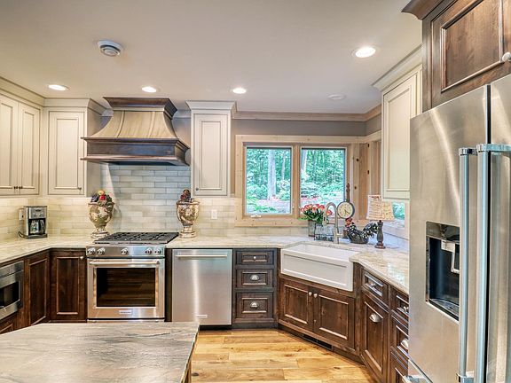 You will be welcomed by a long paver driveway, leading to a magnificent home nestled among the trees. Luxurious finishes like custom cabinetry, white oak hardwood flooring, leathered granite kitchen peninsula, tiled accents can be seen throughout the home. The centerpiece of the living area is a stunning stone fireplace, creating a cozy ambiance. The primary suite on the main level offers a private sanctuary, complete with lake views. In addition, a loft overlooking the great room is a great place to relax. Enjoy the paver walkways down to the water's edge. Clitherall Lake is known for its crystal-clear waters and recreational opportunities. Located near Battle Lake, you'll have access to charming local shops & restaurants. Call your favorite agent for a private showing.