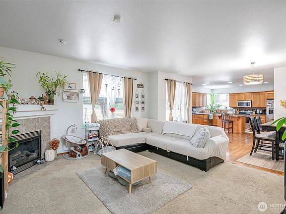 This 4-bedroom, 2.5-bath home combines space, comfort, and modern convenience in a desirable Spanaway location. The open main level features a welcoming living area with a gas fireplace, dining space, and a well-designed kitchen with stainless appliances, center island, and plenty of storage. Upstairs, the spacious primary suite offers a soaking tub, dual vanities, and a large closet, accompanied by three additional bedrooms and a full bath. Enjoy a fully fenced backyard with an extended patio, perfect for relaxing or entertaining. With A/C, a 3-car garage, and close proximity to JBLM, schools, parks, and shopping, this home delivers the lifestyle and flexibility you are are looking for!