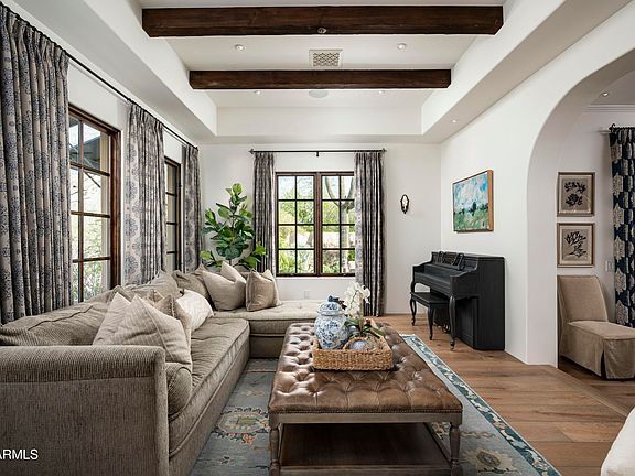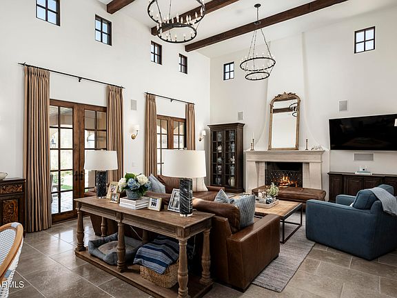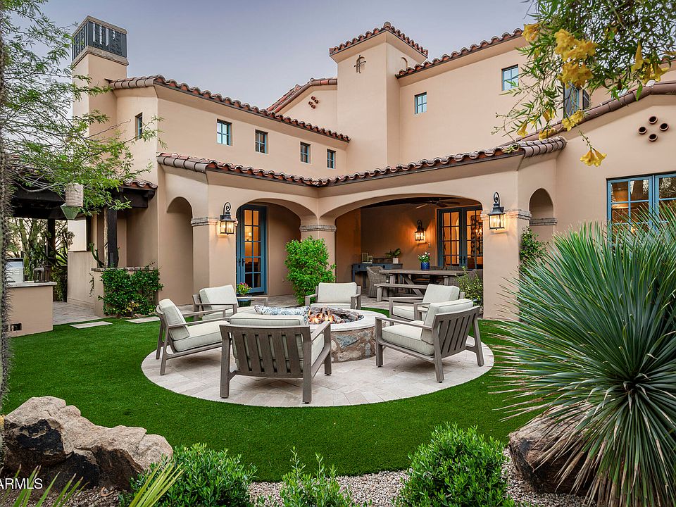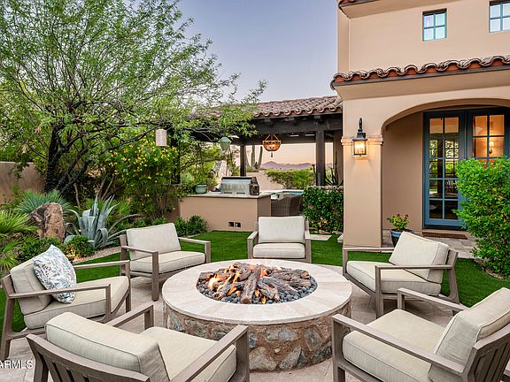 Nestled in the prestigious Horseshoe Canyon neighborhood of Silverleaf, this elegantly updated Mediterranean-style estate sits at the end of a quiet cul-de-sac, offering stunning mountain, city light, and sunset views. Thoughtfully designed for both relaxed living and refined entertaining, the home blends timeless sophistication with inviting indoor-outdoor spaces—including charming courtyards and serene patios. Step outside and experience unmatched outdoor living, featuring a cozy firepit sitting area, a one-of-a-kind BBQ lounge, golf practice area, and a beautiful fireplace beside the sparkling pool and spa—perfect for year-round entertaining or peaceful evenings under the stars. Inside, every room showcases impeccable craftsmanship and high-end finishes in a light, airy palette that feels both fresh and refined. Highlights include a luxurious primary suite, three spacious en-suite guest bedrooms, and a private guest casita with a separate entranceideal for visitors or extended stays. The chef's kitchen is a culinary dream, featuring a generous walk-in pantry and seamless flow to the living and dining areas. A four-car garage with built-in storage adds convenience and functionality. Enjoy close proximity to the renowned Silverleaf Club and Spa, as well as one of the most acclaimed private golf courses in the Southwestoffering a truly elevated lifestyle just moments from your front door. An extraordinary home in an extraordinary locationthis is Silverleaf living at its finest.