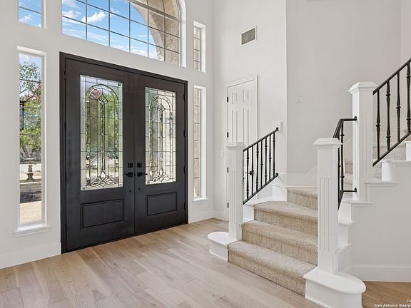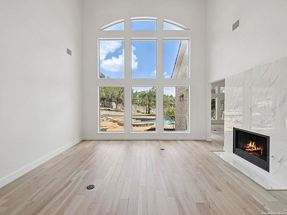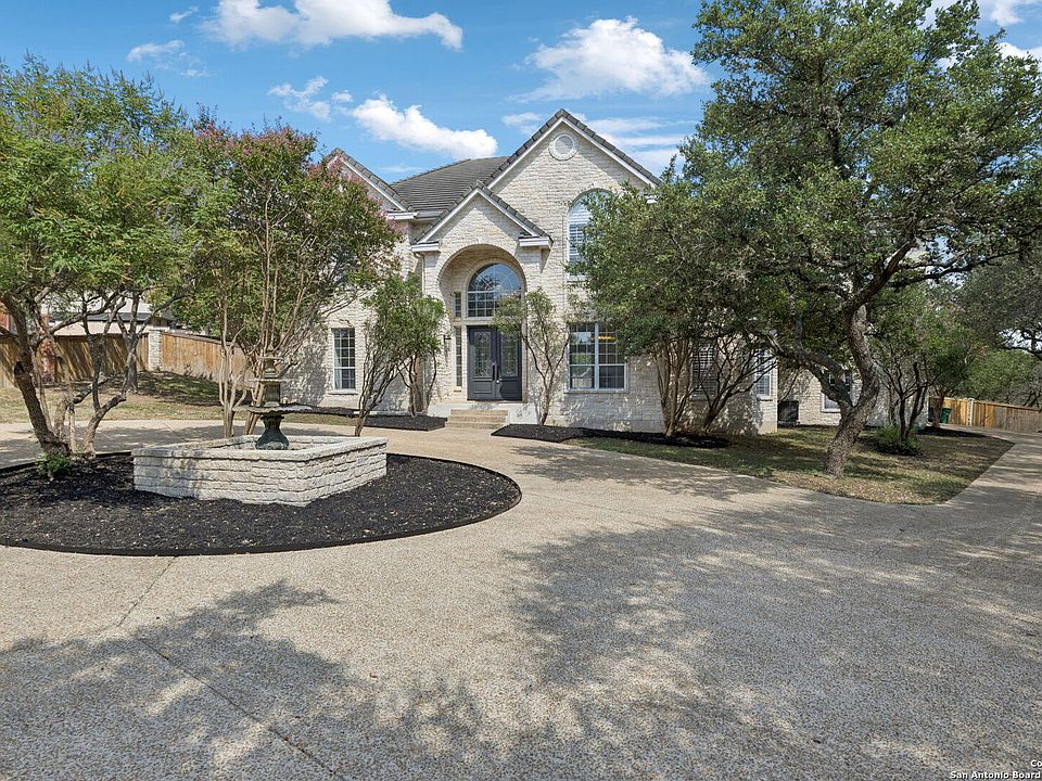 Welcome to 19206 Grey Bluff Cove - a stunning, fully renovated estate nestled in the heart of San Antonio's prestigious Northside. This luxurious property seamlessly blends modern upgrades with timeless elegance, offering an unparalleled lifestyle for both comfortable family living and grand-scale entertaining. Step through the dramatic two-story foyer and ascend one of three handcrafted wrought iron staircases. The home features multiple living spaces, including an media/playroom with glass walls offering breathtaking views of the city skyline and a new wine fridge. At the heart of the home lies a gourmet chef's kitchen equipped with brand-new appliances including Z-line gas range, Kitchen Aid double oven, Kitchen Aid dishwasher, wine fridge, jaw dropping tile, and exquisite cabinetry. The kitchen opens to spacious entertaining areas that flow effortlessly outdoors to a resort-style oasis. Enjoy a completely reimagined outdoor experience featuring a diving pool with a spa and waterfall with new pool pump, filters, Polaris and lighting, multi-level flagstone patios, and a newly updated pool house. The separate 1-bedroom, 1-bath guest quarters provide additional flexible space ideal for visitors, extended family, or a private office. Additional upgrades include 4 brand-new HVAC systems, modern flooring throughout, and full interior renovation of all bathrooms and bedrooms. The property has been meticulously cleaned and refreshed, making this home truly move-in ready. Designer updated lighting package along with new hardwood floor throughout. Located in a quiet cul-de-sac with a circular drive, this estate offers privacy, style, and convenience-all just minutes from top schools, dining, and shopping in Stone Oak. Showings by appointment only. Welcome to your forever home.