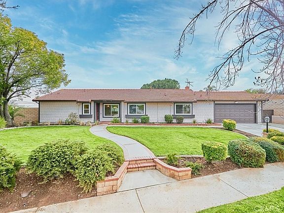 Gorgeous single level 3br 2ba California Ranch style home! This fabulous property is situated on approximately a half acre of property, tucked in a low traffic cul-de-sac. Lush lawns and mature trees and foliage enhance the beauty of the homes exterior, and the interior features a light, neutral color pallet, wood laminate flooring, plush carpeting, recessed lights, updated windows and an open floorplan. The formal living and dining rooms are perfect for entertaining, and the chef's kitchen has been remodeled with warm wood cabinetry, crisp white quartz counter tops and stainless appliances. The peninsula with bar seating, opens to the spacious family room with warm, used brick fireplace and door leading out to oversized covered patio, for wonderful indoor/outdoor living. There are three generously sized bedrooms and two baths, including the exceptional primary with glass door leading to private patio and luxurious en-suite that has an enormous walk in closet. The back yard is a sight to behold, with an expanse of land, dotted with large majestic trees, and surrounded by both block walls and equestrian fencing. The drive through, two car garage with laundry is a nice additional touch. This home is in meticulous move in ready condition, and is the perfect place to call home!