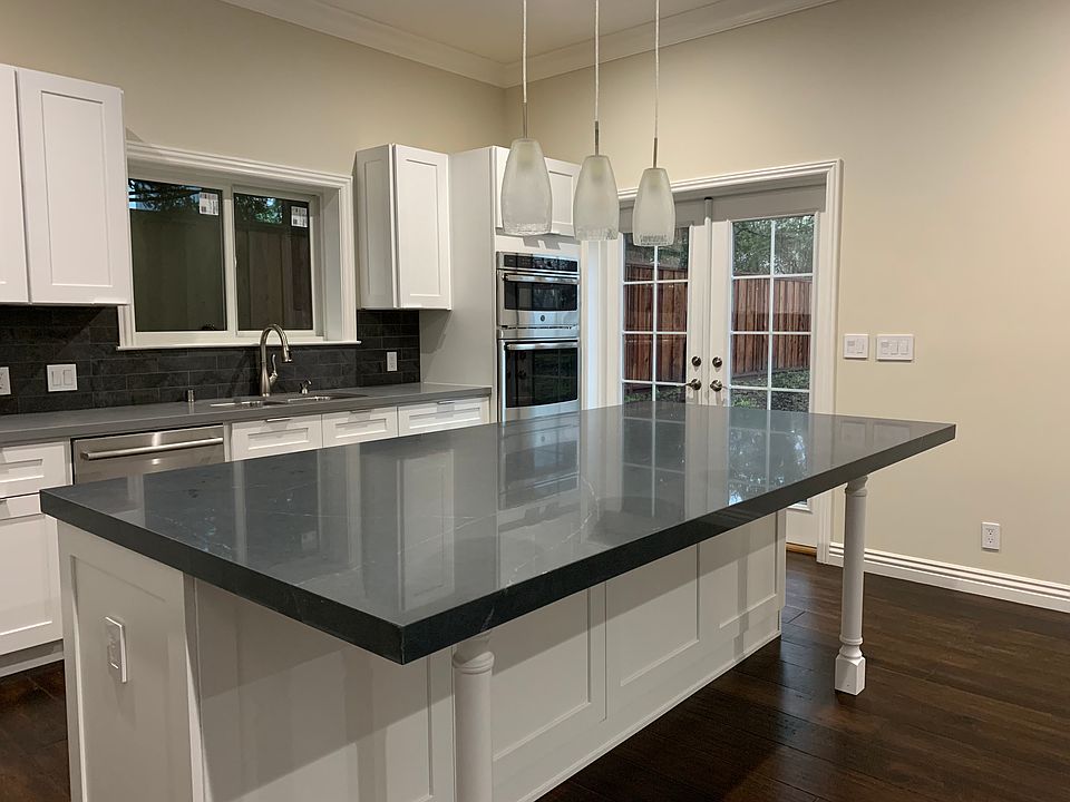 Enjoy cooking in the stylish kitchen with granite countertops, stainless steel appliances, a 5-burner gas range, wall oven, microwave, and dishwasher.