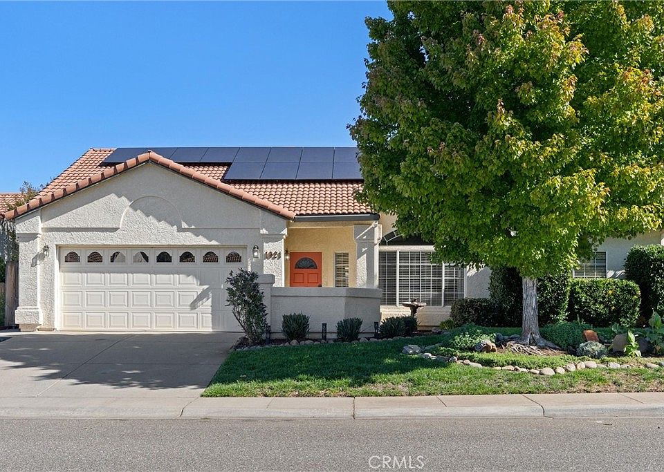 OWNED SOLAR – Zero True-Up! Located on a desirable corner lot in Chico Creek Estates, this beautifully maintained home checks all the boxes. Enjoy a light and bright living room with custom built-ins, soaring vaulted ceilings, and a cozy gas fireplace. The open floor plan features newer engineered flooring throughout and a well-appointed kitchen with stainless steel appliances — refrigerator included. The split floor plan provides privacy, with the primary suite on one side and secondary bedrooms on the other. The primary bedroom offers vaulted ceilings, a sliding door to the backyard, a large walk-in closet, and a spacious bath with dual-sink vanity. Additional highlights include indoor laundry, an attached two-car garage, and an upgraded 8kW owned solar system — the seller has never had a true-up bill since installation. Out back, relax in the top-of-the-line spa (just a couple of years old). Take advantage of the double gate and potential RV access. Don’t miss this one!