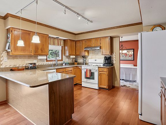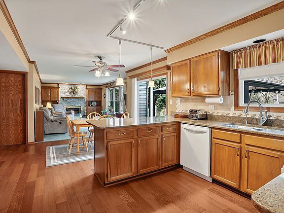 Must see this Absolutely Gorgeous Updated Two-story 3 bedroom, 2 1/2 bath home in highly sought-after Whispering Meadows Subdivision! This Home has been thoughtfully designed and finished with highest level of quality craftsmanship in every detail. Miles and Miles of Quality Oak hardwood Floors, Crown Molding & trim throughout. Highly functional floor plan. Spacious kitchen features Quartz counters, tile backsplash, breakfast bar & eat-in area. Generously sized family room features Real Gas/Wood Fireplace with Custom Built in Cabinetry. Oversized Mudroom/ laundry with built in Storage and Washer and Dryer. No shortage of storage in this home, Two of the three bedrooms have walk-in closets, two impressive hallway linen closets. Beautiful Primary suite which features dual sink vanity, large shower, another oversized linen closet plus huge walk in closet with custom built-in closet organizer in Owners Suite. Open concept partially finished basement complete with Kitchenette, plenty of closet storage plus extra tall cemented crawlspace affords plenty of space for everything. The professionally landscaped backyard boasts a relaxing escape with a huge 19 x 14 concrete patio with gazebo pavilion, 12 x 12 storage shed on Concrete slab & built in Sprinkler System. Great for entertaining friends and family. Additional updates include New Sliding Glass patio Door and Custom Therma Tru Front Door in 2019, and New Low E Double Hung Windows throughout in 2017-2019. Heated Two Car Garage with Workbench and Full Wall of Custom Cabinetry. Sellers are confident the New Owners will love this Amazing move-in ready home for many years to come! Don't miss out on this opportunity. Welcome Home!