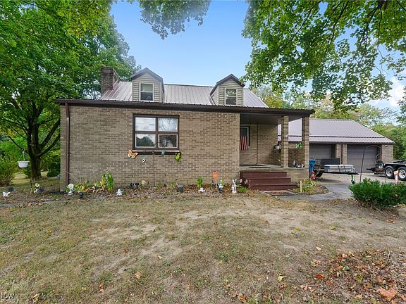 Brick cape-cod home is located on 2+ acres property, where scenic views and privacy abound. New metal roof on home installed in 2021. Large kitchen features ample cabinetry, laminate flooring, and eating area. One bedroom on main level and two bedrooms up. Updated full bath has ceramic flooring, updated vanity, and ceramic tile enclosed shower/tub. The large two-bay attached garage has more than enough room for a workshop area and features separate garage doors w/openers. Large covered back patio ideal for parties and picnics. Extra building with garage door w/opener, wood burner, concrete flooring, attic area, and attached enclosed lean-to. The Big Garage (50x25) with roll-up door was built in 2022, with expansive wide-open space for virtually any project, hobby or storage needs--this building alone could easily accommodate a boat plus four vehicles or more! New furnace and water softener in 2022. Septic system replaced in 2014. Full basement with washer & dryer hook-up area & utility bathroom. Asphalt driveway. Located near to Sharpsville, Sharon, Hermitage, Brookfield, & Warren. When outstanding location, desirable features, a nice piece of land, and price/value all meet, brick homes like this one almost always sell quickly, so act fast--see this home today, then maybe call it home tomorrow!