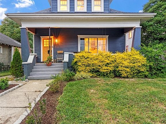 So much curb appeal awaits on Spring Street with this beautifully updated Craftsman-style bungalow. A long front porch with swing sets the tone before welcoming guests into a dedicated foyer with impeccably finished inlay hardwoods that carry throughout the home. The bright family room features three large windows overlooking the porch, while stunning millwork and natural light showcase the home’s character. The updated kitchen offers shaker cabinets, stone countertops, stainless appliances, an undermount sink, and painted brick accents. Three bedrooms and two beautifully updated full baths provide comfortable living, including an upstairs primary suite with a gorgeous custom bathroom thoughtfully tailored to the home’s original design. A convenient first-floor laundry adds ease of living. Recent 2023 upgrades include a nearly complete electrical redo, new furnace, A/C, water heater, and partial ductwork. The basement is waterproofed, partially framed with an egress window—ready to finish for extra living space. Outdoors, a full privacy-fenced backyard and newly added brick patio create the perfect retreat. This one is truly move-in ready with timeless style and thoughtful modern updates.