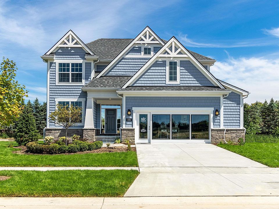 Beautiful & desirable craftsman-style two-story home under construction on a premium site in Stonegate Village in Wixom. The Campbell features 4 bedrooms, 2 1/2 baths, family room w/ fireplace, study, expanded dining nook, & kitchen with granite countertops w/snack bar extension. Maple cabinets and Whirlpool stainless gas range, dishwasher, disposal and microwave. Hardwood at family room. Granite counters in both bathrooms and powder room. The owner's suite features a walk-in closet & deluxe owner's bath with soaker tub. There are three additional bedrooms & full bathroom. Recessed lighting package. Ceiling fan prep in family room, study and owner's suite. Three-piece rough plumbing at full basement, central air, humidifier & 2 1/2-car attached garage. Basement waterproofing and home warranty. Sod and sprinklers. Photos and virtual tour of a comparable home.