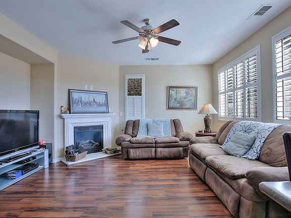 Located in blissful North Clovis home. This beautiful house greets you with brand new laminate flooring, 20ft vaulted ceilings and plantation shutters throughout. Features include both a living rm with a dining area and a family rm with gas fireplace. The kitchen is fully upgraded with cherry wood cabinets, corian counters in kitchen, stainless steel appliances, gas stove and a large kitchen nook. Relax in your master bedroom with beautiful views of the Sierras. Master bath features a large soaking tub, separate shower, duel sinks and large walk-in closet. At the top of the stairs is a loft that suits well for a variety of uses such as a play rm, office, crafts or additional living space. The laundry rm is conveniently located upstairs. This home is already plumbed for a water treatment system. The back features a custom patio design with a designated outlet to support a hot tub and gas for your bbq grill. This gated community offers a grassy park, shaded picnic tables with 2 bbq grills perfect for any gathering and nearby walking trails.