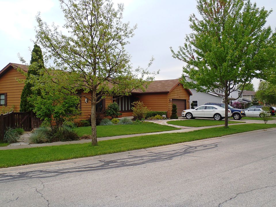 Fantastic ranch home with fenced yard! Super curb appeal with front porch & on-trend navy blue siding ~ Step into this open concept home with so much space ~ Formal living room or flex room with casement windows across front wall ~ Open Kitchen to Cozy Family Room & Bonus Room perfect for entertaining ~ Kitchen features granite counters including two breakfast bars, hardwood floors on the 45 angle, newer stainless steel appliances & lots of natural light ~ Family Room with brick fireplace w/ stone mantel & hearth ~ BONUS Room is HUGE with wet bar & built-ins, vaulted ceiling & skylights plus access to the brand new deck and fenced yard ~ 3 Bedrooms on main floor including Primary Bedroom w/ ensuite Bath & closet with professional organization system ~ 2 more bedrooms & Hall Full Bath finish off the first floor ~ FINISHED BASEMENT w/ 4th bedroom with closet or Office and spacious Recreation Room plus unfinished crawl & laundry room/mechanical room ~ Solar Panels for SUPER LOW utility bills! ~ Newer: Furnace & A/C (2013), Deck (2020), Complete Re-Roof (2015), Gutters/Downspouts/Fascia (2015), Bonus Room Windows Replaced (2016), Solar Panels installed & leased (Lease part of purchase at $89/month-2019), Fence posts reinforced with steel posts (2012 & rest in 2015) Great location CLOSE to expressway, train, schools, restaurants, shops & MORE! ~ Award winning District 211