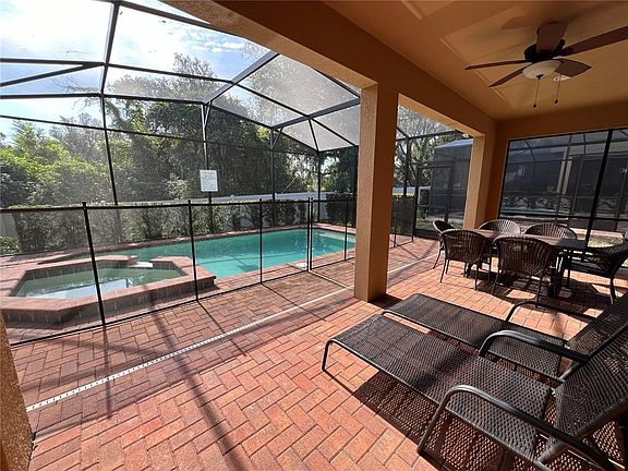 Fully Furnished Pool and Spa Home. A fantastic choice to be your Vacation Home or Rental Property in the Windsor at Westside Resort! 6 Bedrooms - 4.5 Bathrooms and a Gorgeous Loft. Private Heated Pool and Spa with a great view from your pool deck area. As you step inside, you are greeted by a foyer and entrance high ceiling. The main level features a master bedroom with a bathroom that connects to the pool area, perfect for accommodating guests. A conveniently located half bathroom adds to the overall functionality of this level. Continuing on, you'll discover a spacious and open-concept living area that seamlessly connects the family room, dining area, and kitchen. The kitchen is equipped with stainless steel appliances, abundant counter space, and a breakfast bar, making it a central hub for culinary adventures and social gatherings. Upstairs you will find the large loft with TV, coach and a nice bar table, 1 more en-suite (second master bedroom) and 4 more bedrooms (2 of them Themed Bedrooms) sharing two more bathrooms. This home features a heated private pool/spa, a large covered Lanai with patio furniture and sun loungers, tile roof and furnished. The Windsor at Westside Resort is a Gated Community with a great Clubhouse for vacationers, and features amenities including a lazy river, splash pool, bar, gym, game room and more. This is a great vacation home, very close to other area attractions. Schedule your visit NOW. Stunning Home.