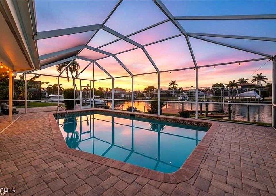 Wrap-around dockDirect gulf access homeSpacious two-car garageExpansive paver pool deckWell-appointed hall bathLush tropical landscapingSpacious primary suite