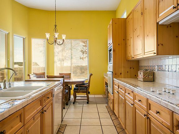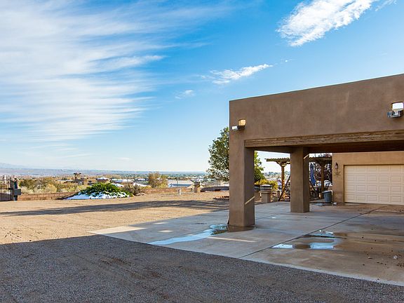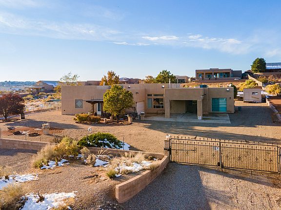Unobstructed views of the Sandias and Albuquerque!! From the fully finished, low maintenance landscaping to the quality construction and design of this pueblo style home, you'll be impressed with the details this property offers. This home boasts a bright sunny kitchen, plenty of knotty pine cabinets, Talavera style counters with a built in kitchen desk and cooking island. It has two living areas, a kiva fireplace in the family room, that can be wood or gas, a jetted tub in the master suite, soaring ceilings and massive Viga beams. RADIENT HEAT in the floors and REFRIGERATED AIR CONDITIONING. There's a large bonus room for an office or whatever hobby your heart desires. Oh! I forgot to mention the large mostly finished separate building of about 120 sq ft! See this one for sure!