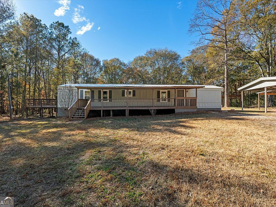 Nestled on 4.95 acres of quiet, scenic land, this property offers a perfect blend of open, cleared space and natural wooded privacy. The home features a welcoming rocking-chair front porch and a spacious back deck ideal for relaxing or entertaining. Inside, recent updates include new kitchen cabinets, stone countertops, modern fixtures, fresh paint, and new flooring throughout. Multiple outbuildings remain with the property, providing excellent options for storage, hobbies, or future projects.